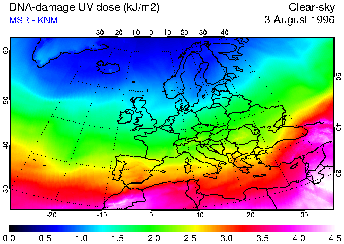 DNA-damage UV dose of 03 August 1996