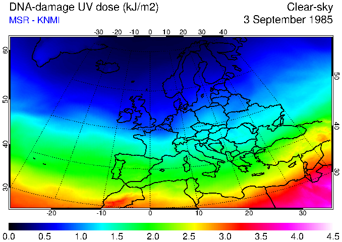 DNA-damage UV dose of 03 September 1985