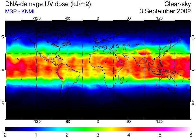 Daily UV dose:   erythemal  |  vitamin-D  |  DNA-damage