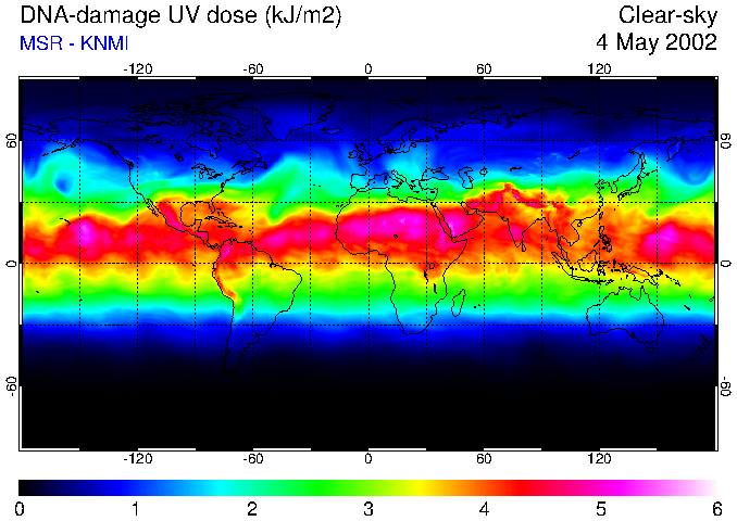 Daily UV dose:   erythemal  |  vitamin-D  |  DNA-damage