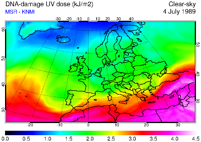DNA-damage UV dose of 04 July 1989