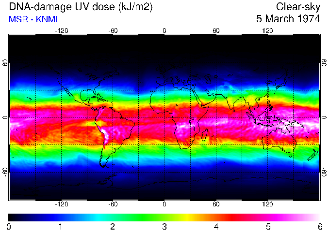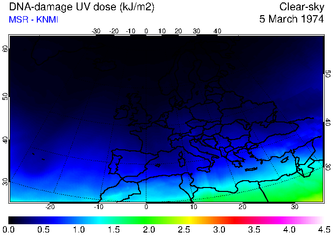 DNA-damage UV dose of 05 March 1974