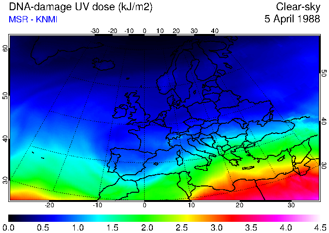 DNA-damage UV dose of 05 April 1988