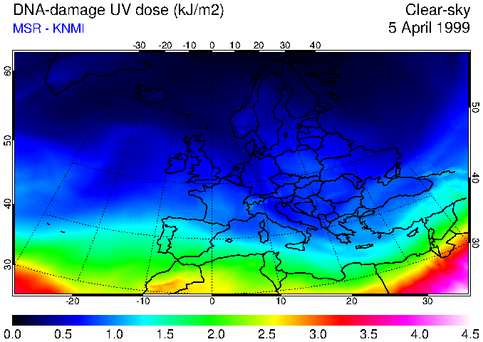 DNA-damage UV dose of 05 April 1999