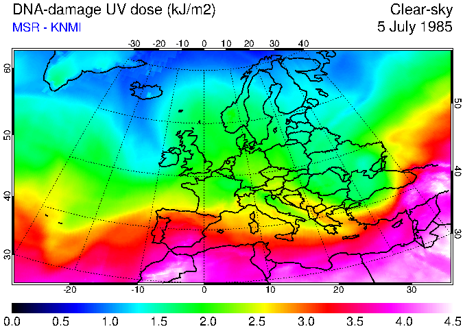 DNA-damage UV dose of 05 July 1985