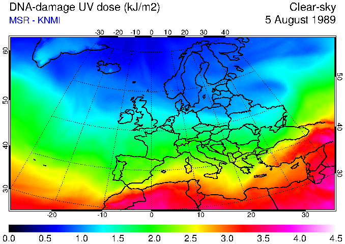 DNA-damage UV dose of 05 August 1989