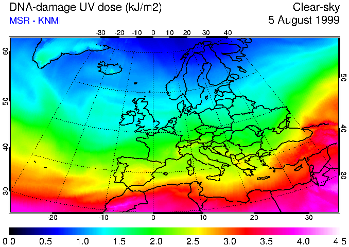 DNA-damage UV dose of 05 August 1999
