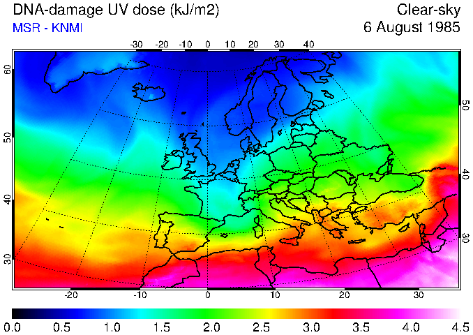DNA-damage UV dose of 06 August 1985