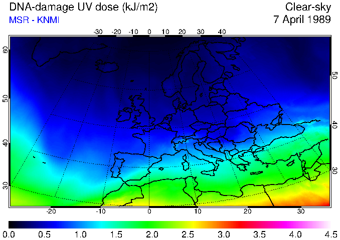 DNA-damage UV dose of 07 April 1989