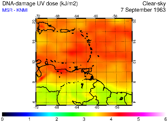 Clear-sky UV index:   erythemal