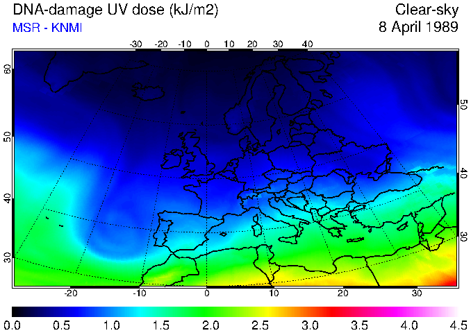 DNA-damage UV dose of 08 April 1989