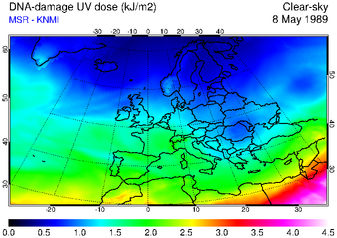 DNA-damage UV dose of 08 May 1989