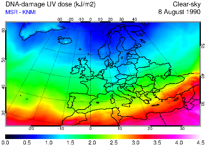 DNA-damage UV dose of 08 August 1990