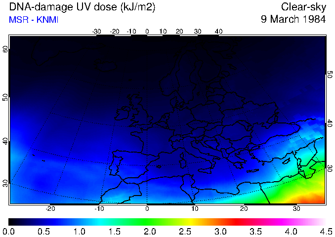 DNA-damage UV dose of 09 March 1984