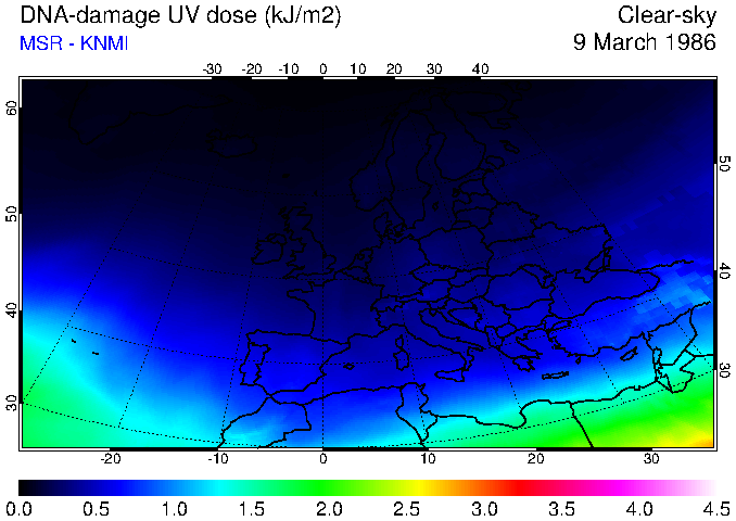 DNA-damage UV dose of 09 March 1986