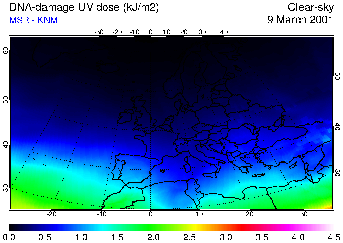DNA-damage UV dose of 09 March 2001