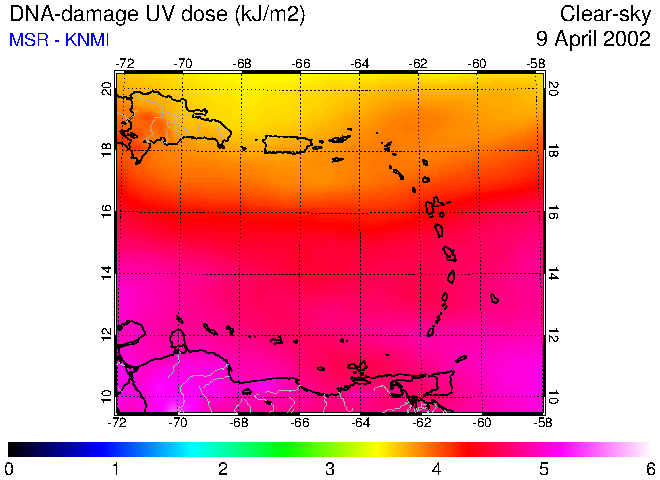 Clear-sky UV index:   erythemal