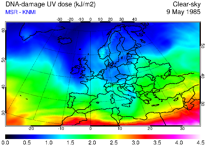 DNA-damage UV dose of 09 May 1985