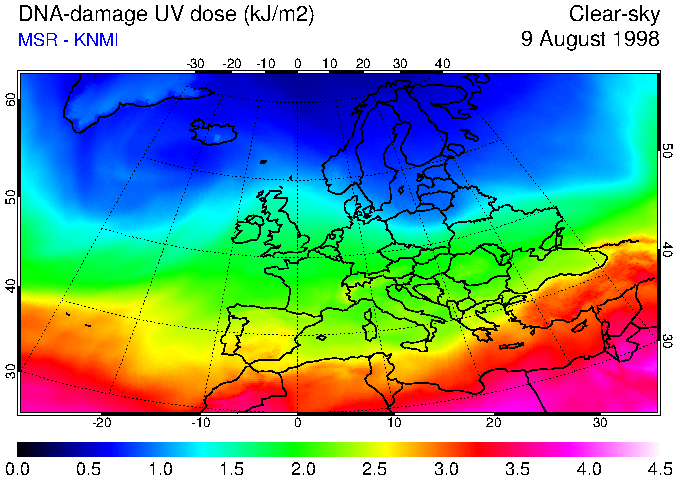 DNA-damage UV dose of 09 August 1998
