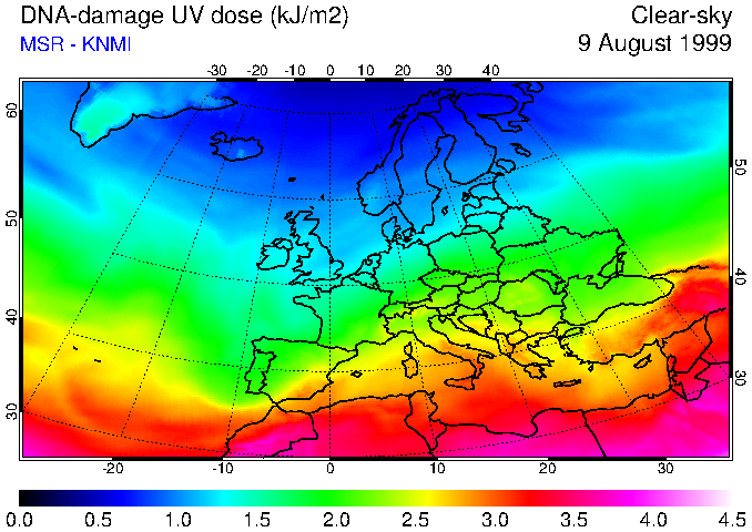 DNA-damage UV dose of 09 August 1999