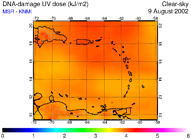 Clear-sky UV index:   erythemal
