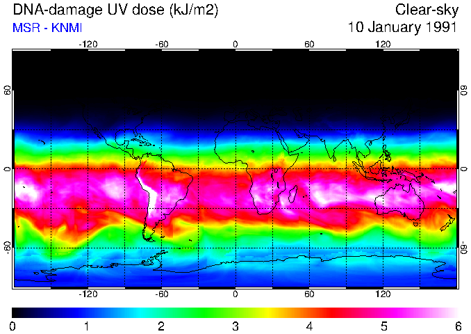 DNA-damage UV dose of 10 January 1991