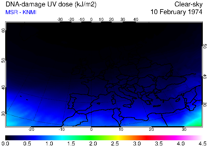 DNA-damage UV dose of 10 February 1974