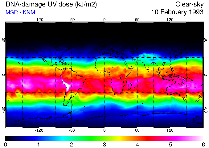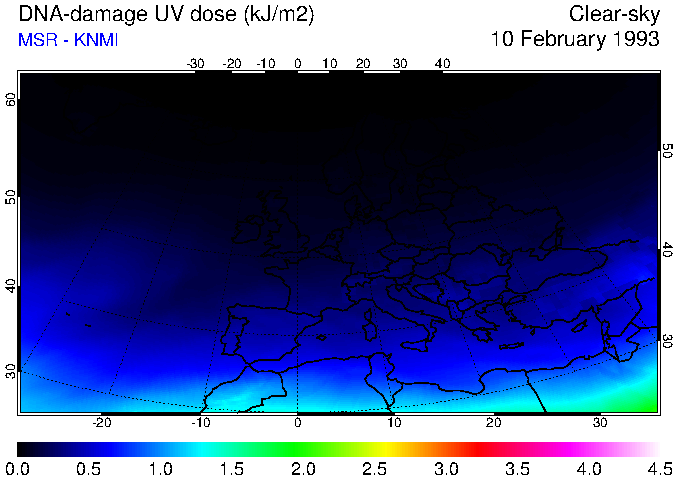 DNA-damage UV dose of 10 February 1993