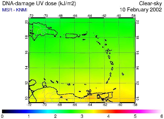 Clear-sky UV index:   erythemal