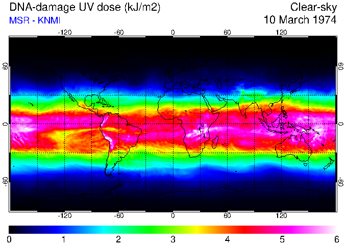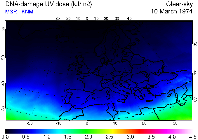 DNA-damage UV dose of 10 March 1974