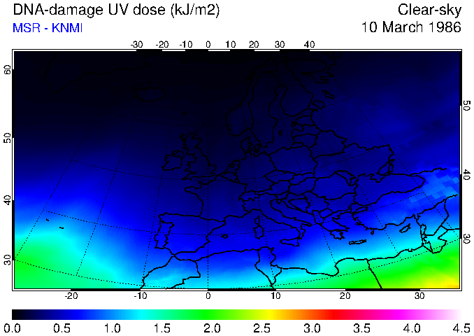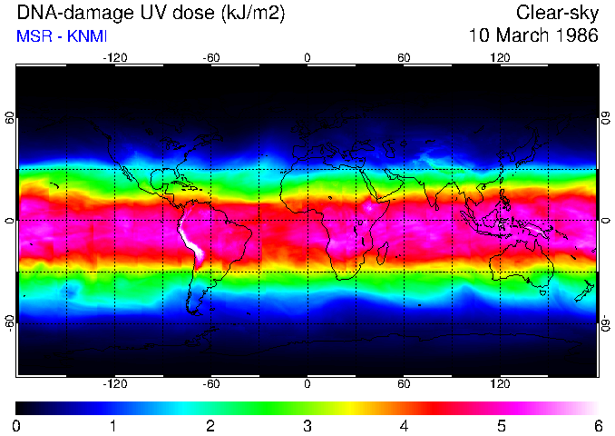DNA-damage UV dose of 10 March 1986