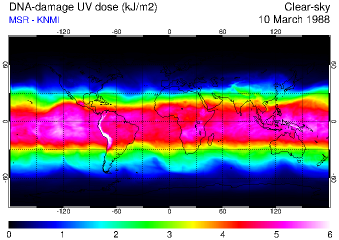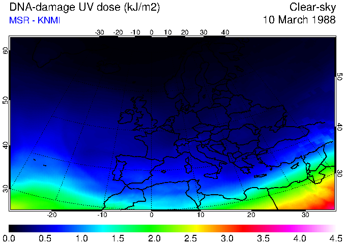DNA-damage UV dose of 10 March 1988