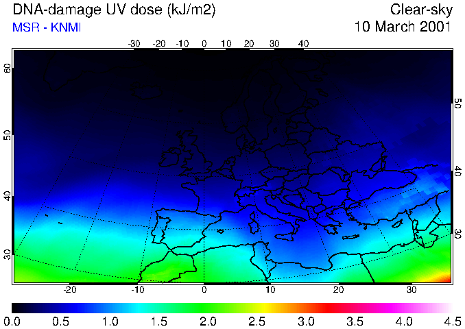 DNA-damage UV dose of 10 March 2001