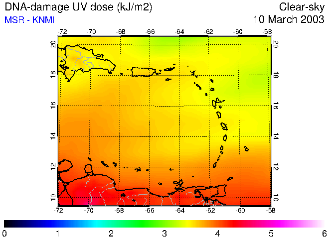 Clear-sky UV index:   erythemal