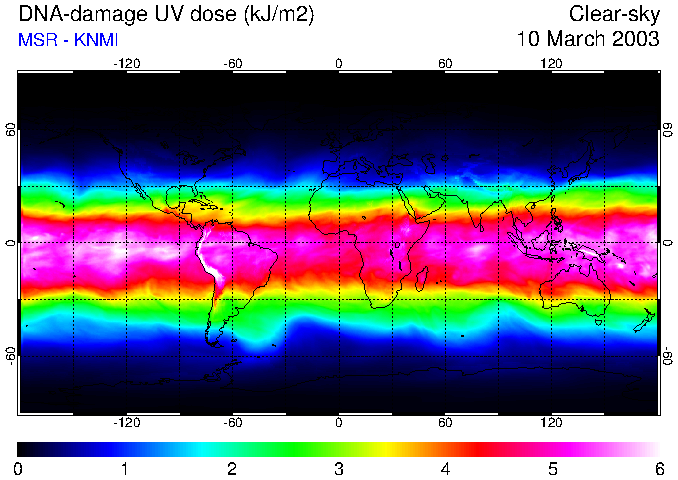 Daily UV dose:   erythemal  |  vitamin-D  |  DNA-damage