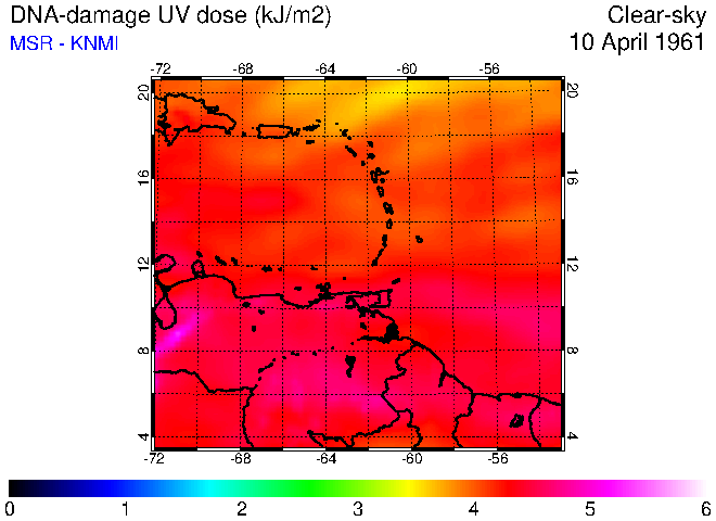 Clear-sky UV index:   erythemal