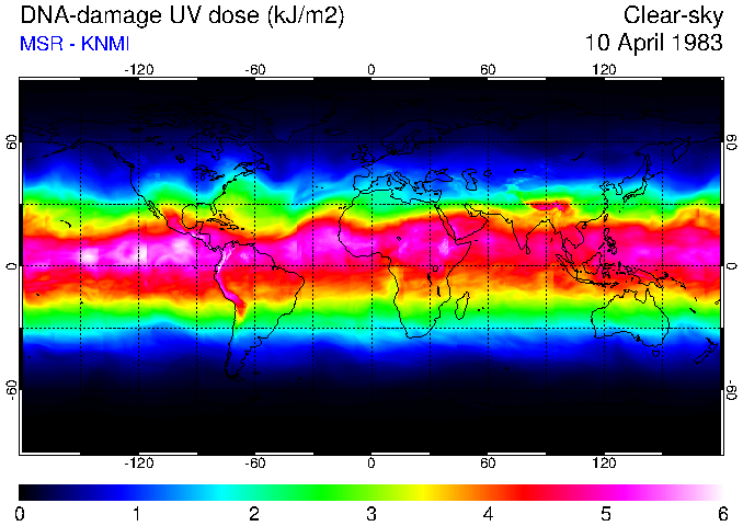 Daily UV dose:   erythemal  |  vitamin-D  |  DNA-damage