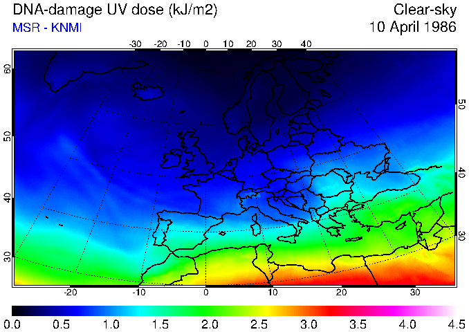 DNA-damage UV dose of 10 April 1986
