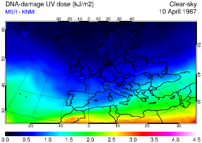 DNA-damage UV dose of 10 April 1987