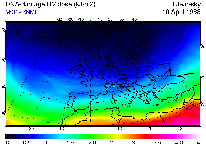 DNA-damage UV dose of 10 April 1988