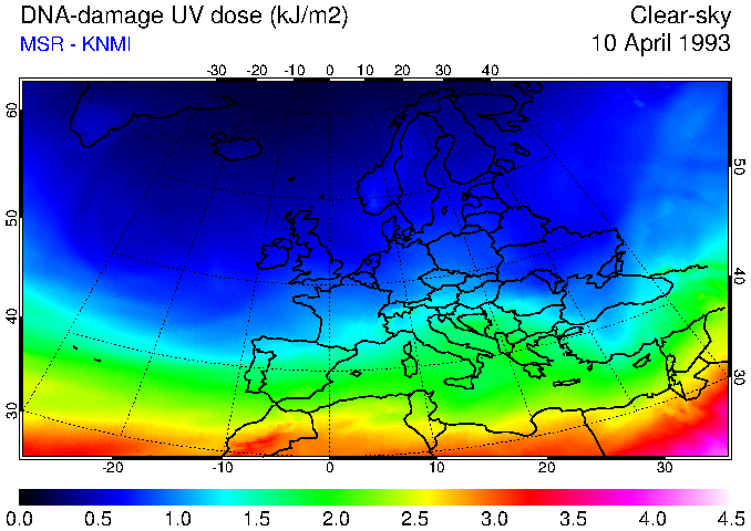 DNA-damage UV dose of 10 April 1993
