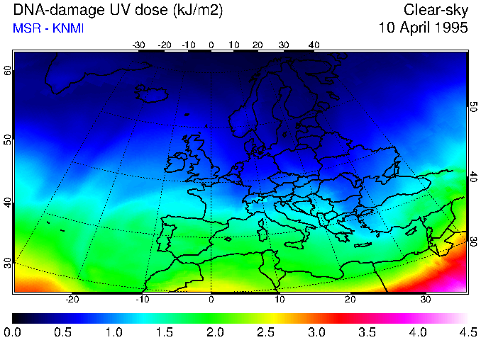 DNA-damage UV dose of 10 April 1995