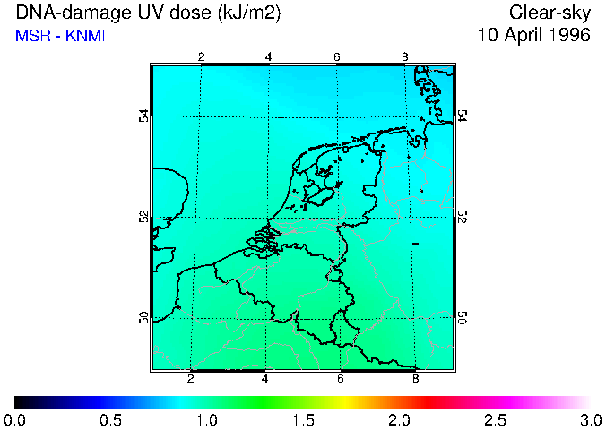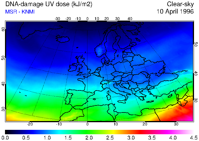 DNA-damage UV dose of 10 April 1996