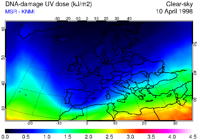 DNA-damage UV dose of 10 April 1998