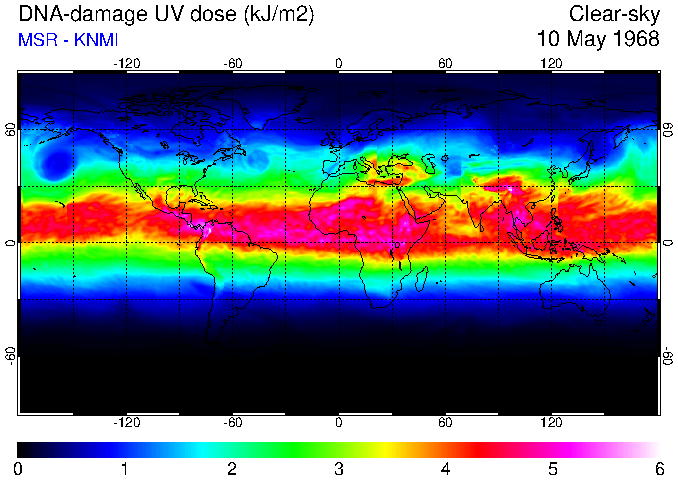 Daily UV dose:   erythemal  |  vitamin-D  |  DNA-damage