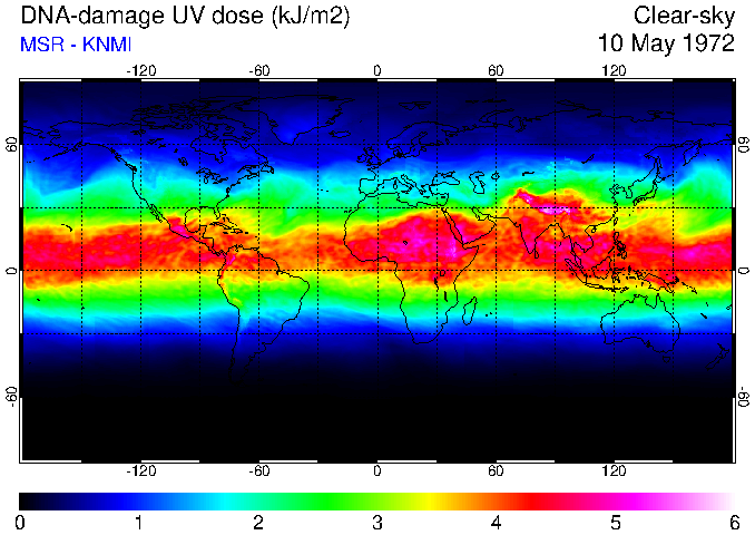 Daily UV dose:   erythemal  |  vitamin-D  |  DNA-damage