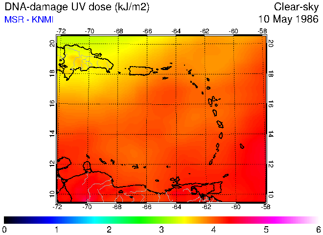 Clear-sky UV index:   erythemal