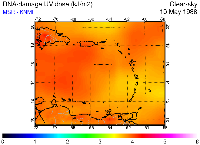 Clear-sky UV index:   erythemal