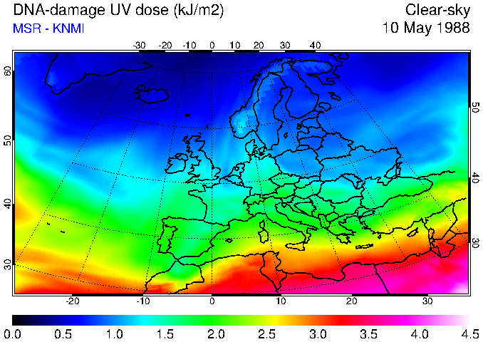 DNA-damage UV dose of 10 May 1988