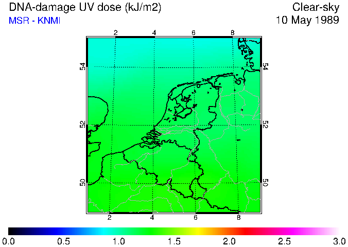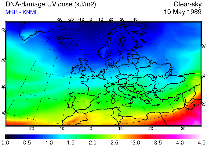 DNA-damage UV dose of 10 May 1989